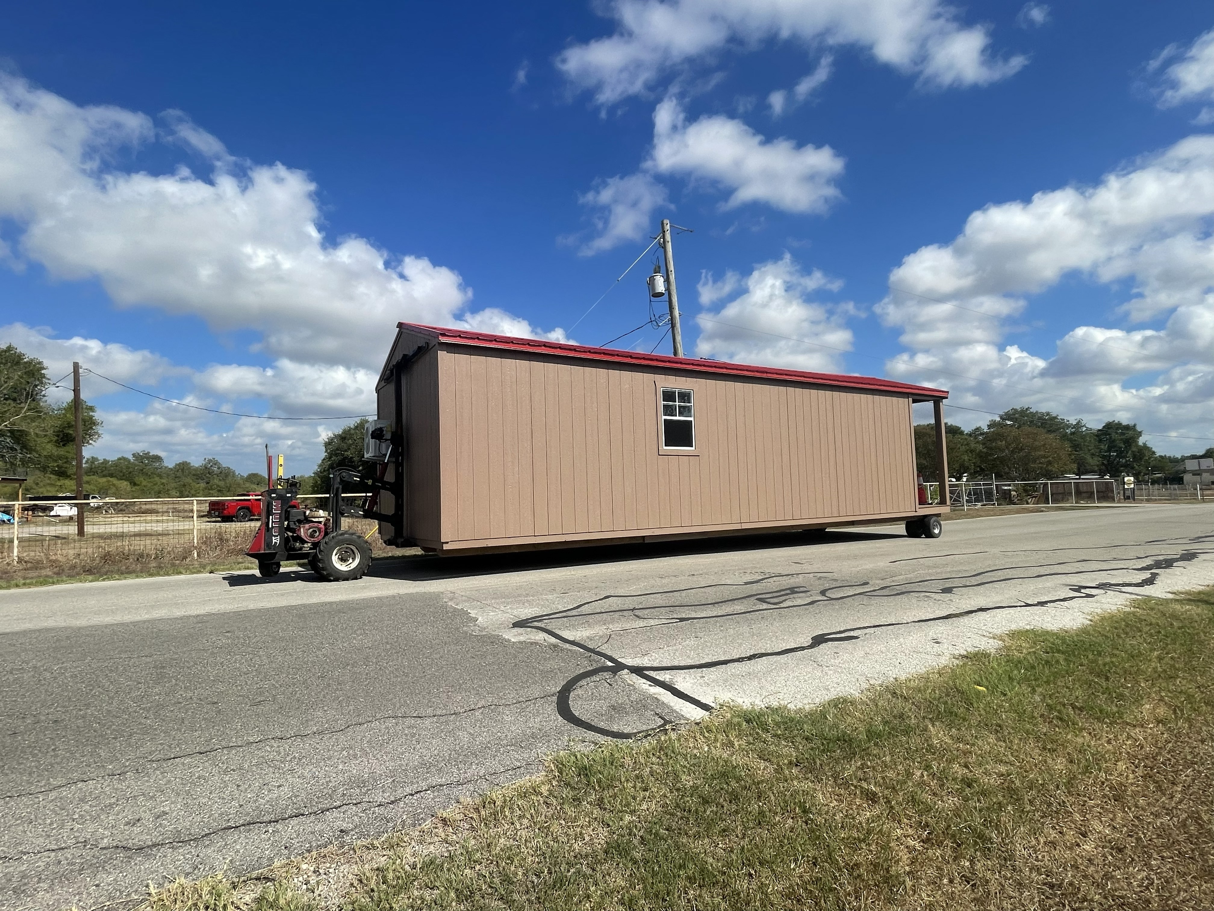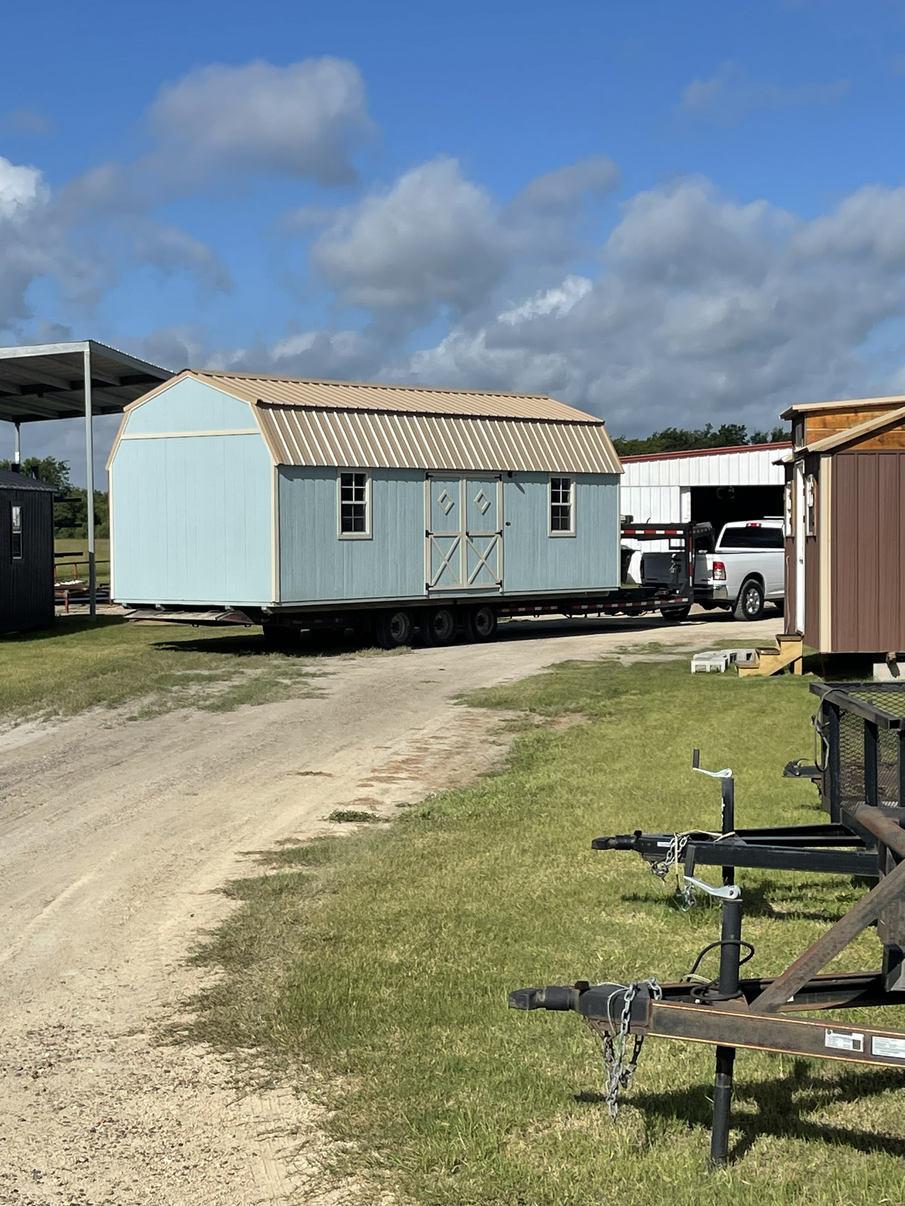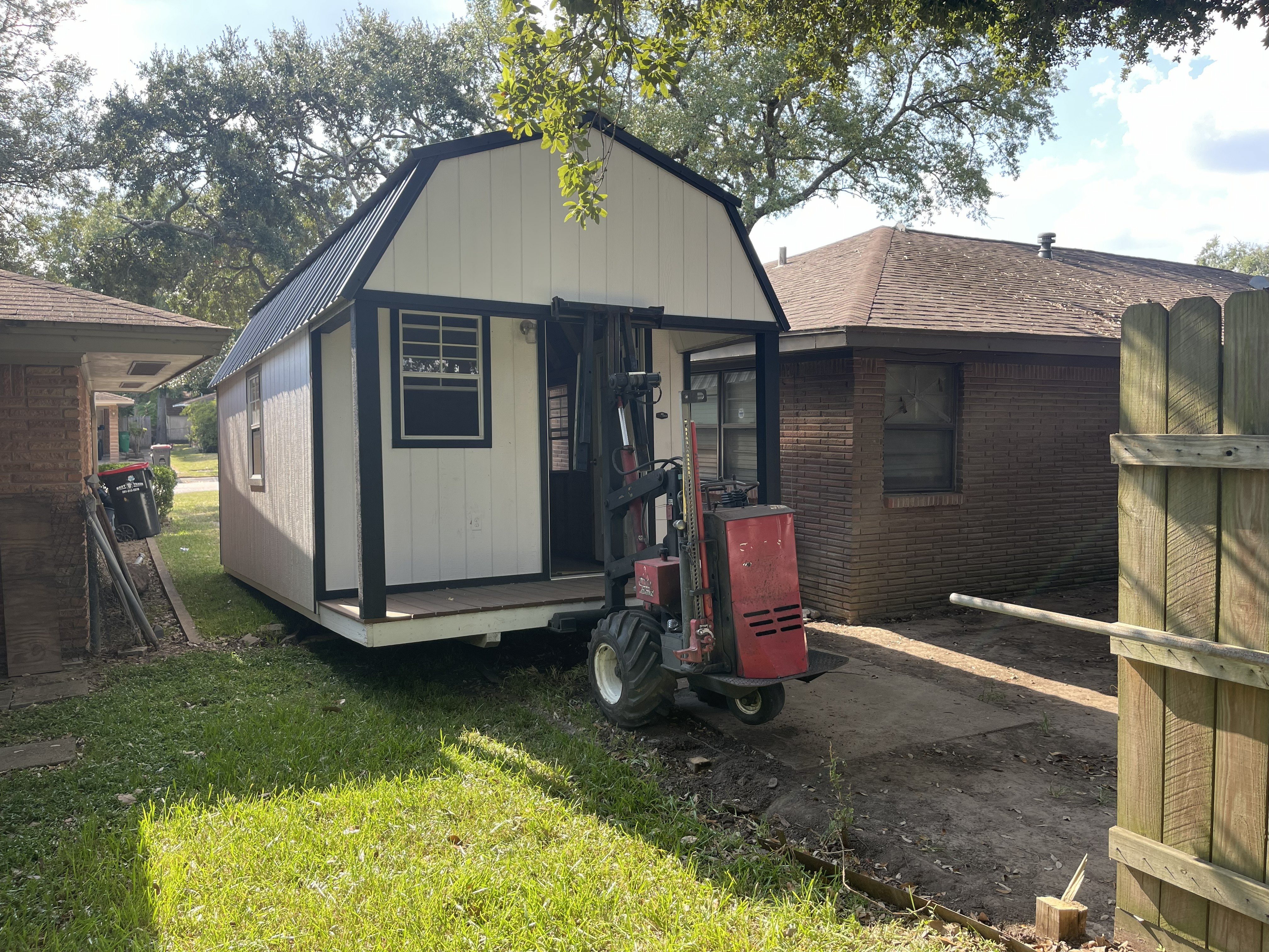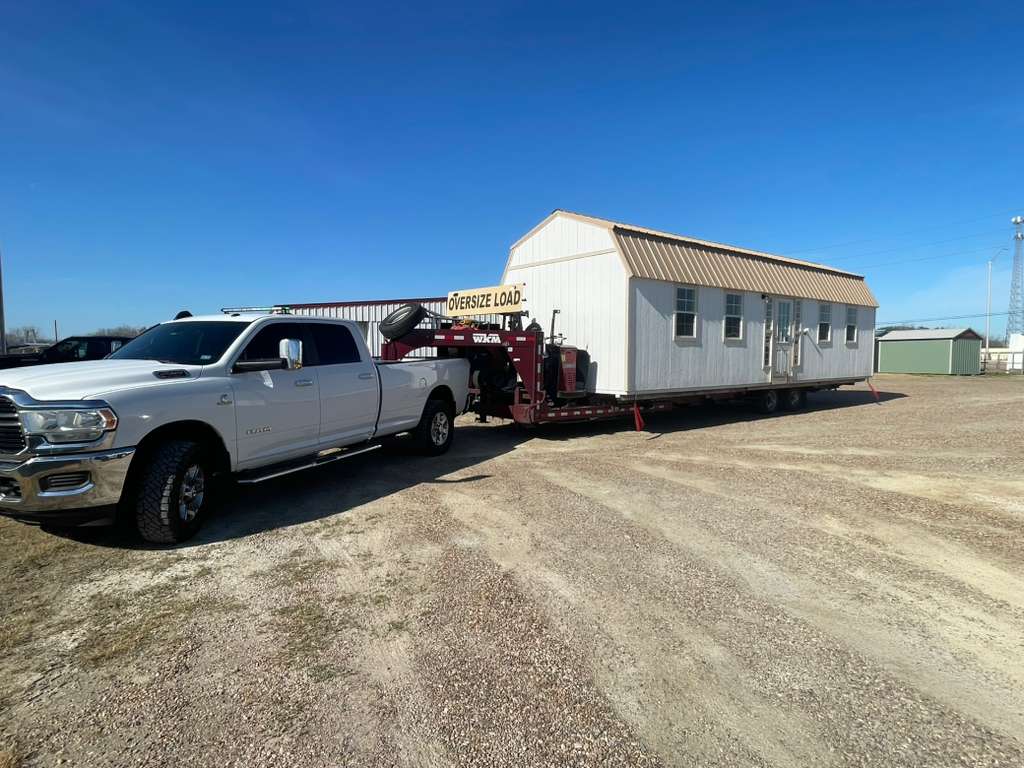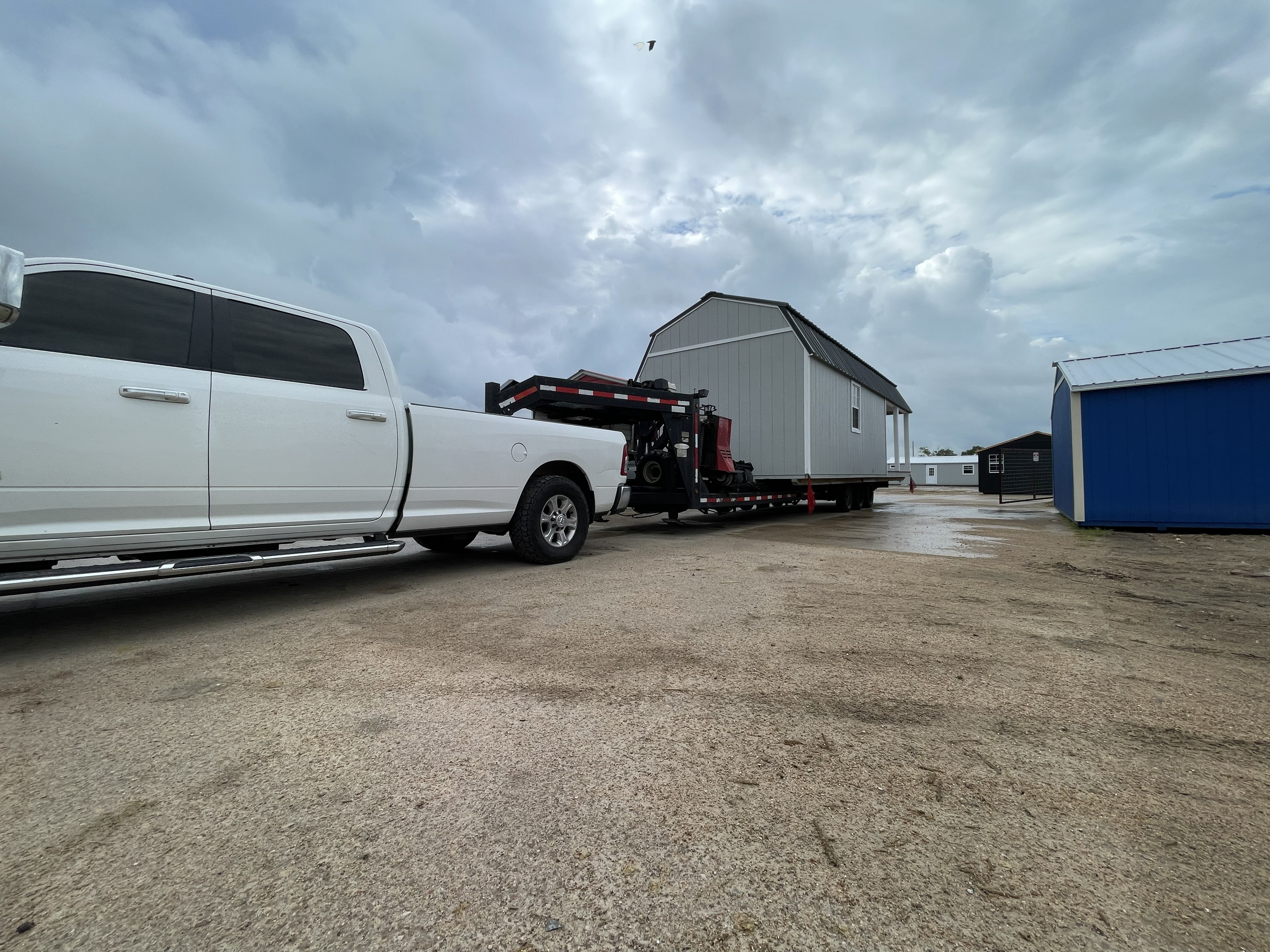 Examples of container and shed delivery, placement, and relocation work.